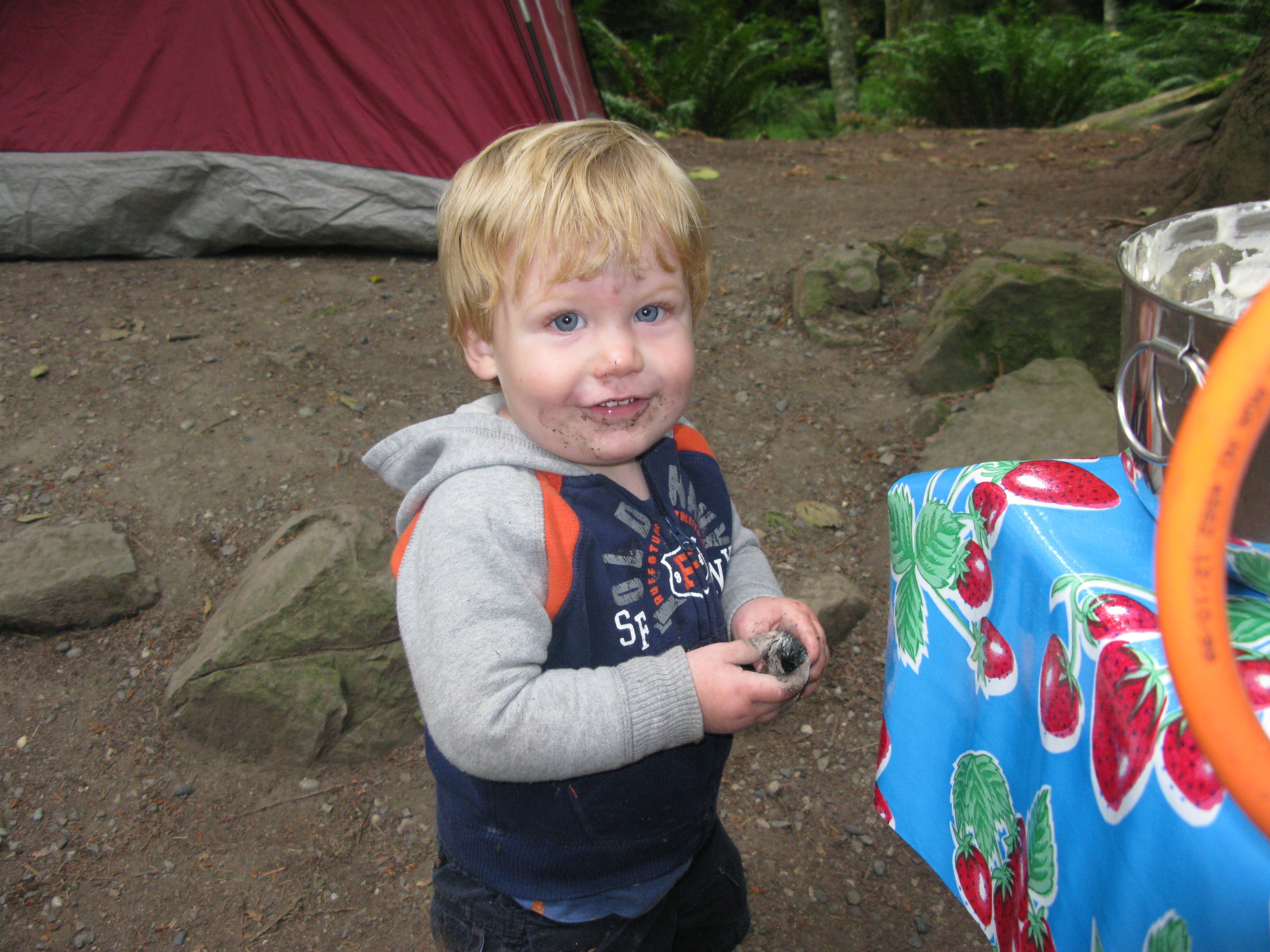 Well, folks. We did it. We survived our first-ever Rust Family camping trip. We hit the road Friday afternoon with our car fit to burst. Despite some gnarly traffic in Everett that added an additional hour to our drive, we made it to Larabee State Park with relative ease. Our walk-in campsite was perfect. The sites on either side of us were empty, we were away from the cars and just a few steps away from our friends at the end of the path. Excellent. So far, so good.