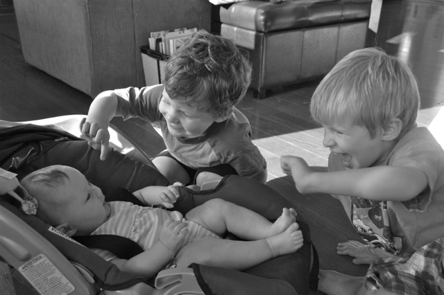When my boys touch a baby girl and try to kiss her, there are no sexual intentions involved. They are simply mimicking the behavior they have seen in me and Jason. I delight in seeing them act the ever-nurturing papa and imitating my husband in their affectionate actions. I don’t want to give them the false impression that there is some sort of sinister sexual desire simmering beneath the surface. I also want to teach them about personal boundaries because it’s important to respect another person’s space. Responding to their repeated and over-eager attempts to kiss a baby with a hearty laugh and a “boys will be boys,” wrongly teaches them that that’s just the way they are. It’s expected, even. Nothin’ you can do about it. Boys will be boys.