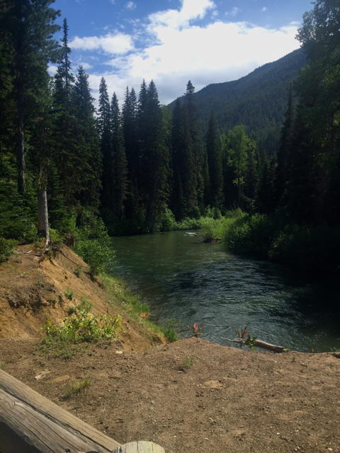 So what did I do with all that spare time this weekend? I drank tea by the river one evening. I sat quietly in the afternoons and looked out at the trees and the mountains. I read books. I wrote an entry in my “giving thanks” journal which now has exactly 2 entries. I had a really good conversation with Jason as we lingered by the campfire on our last night. I even used Isaiah’s water colors one afternoon and tried my hand at painting. In short, not much. But I felt an unfurling of sorts; an unclenching of fists and a freedom from my usual frenetic pace. I also felt a nearness of God that I don’t normally feel.