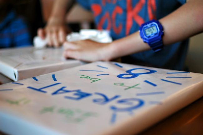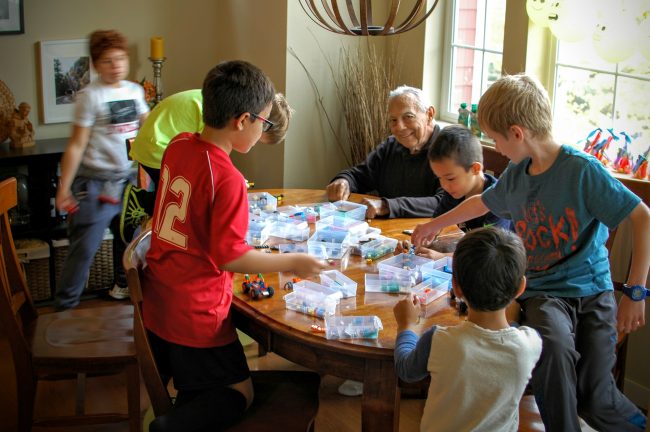 Well, that’s a wrap. The 8th birthday is in the bag. This year Gryffin requested a Lego party (same as last year, sweet boy) with Pizza Hut pizza (he was very specific about this, much to Jason’s chagrin) and vanilla cupcakes. We made a small ramp out of some foam core and had the kids make their own race cars to run down the ramp.